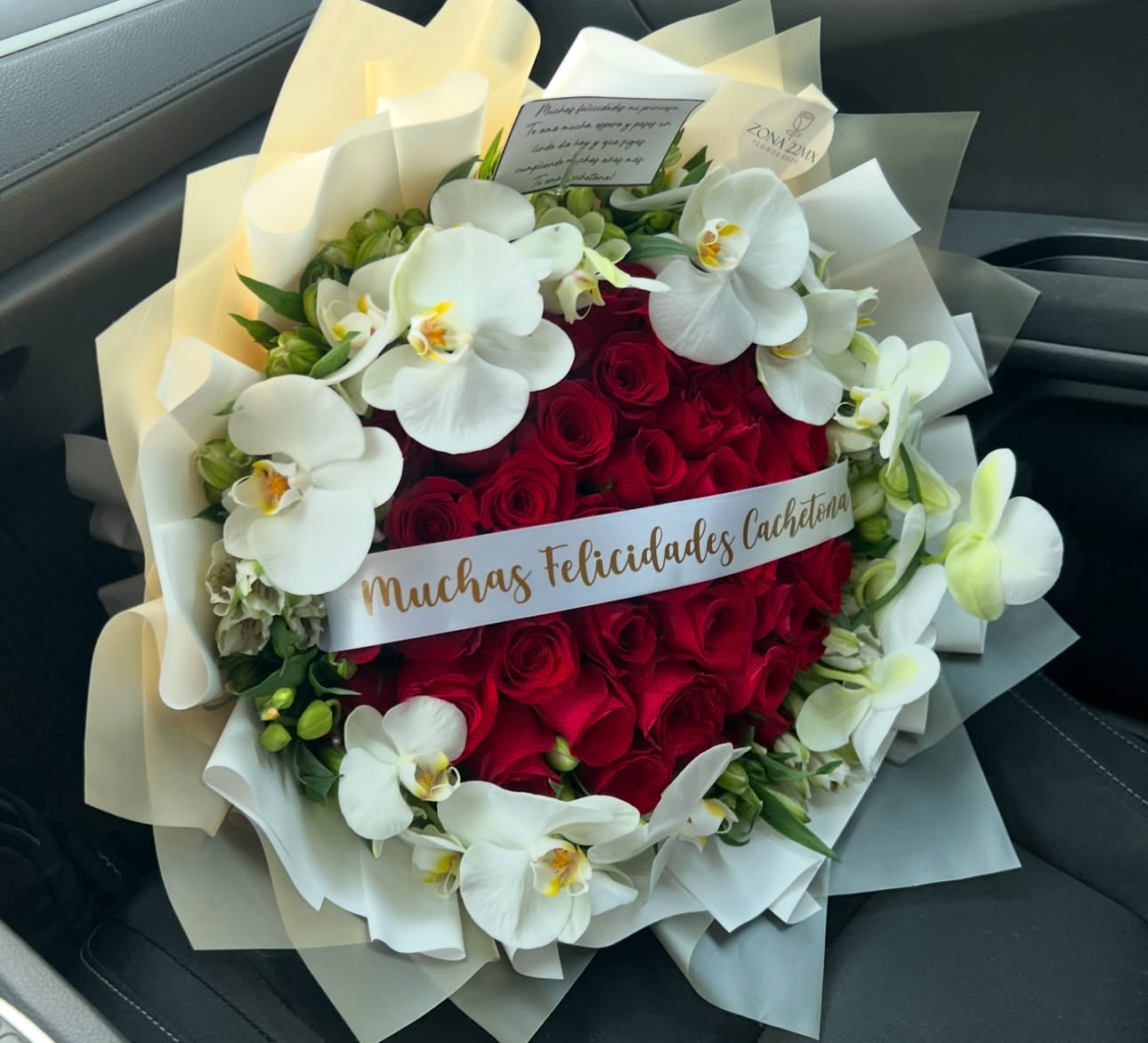 50 Rosas frescas con algunas lilies y unas orquídeas!