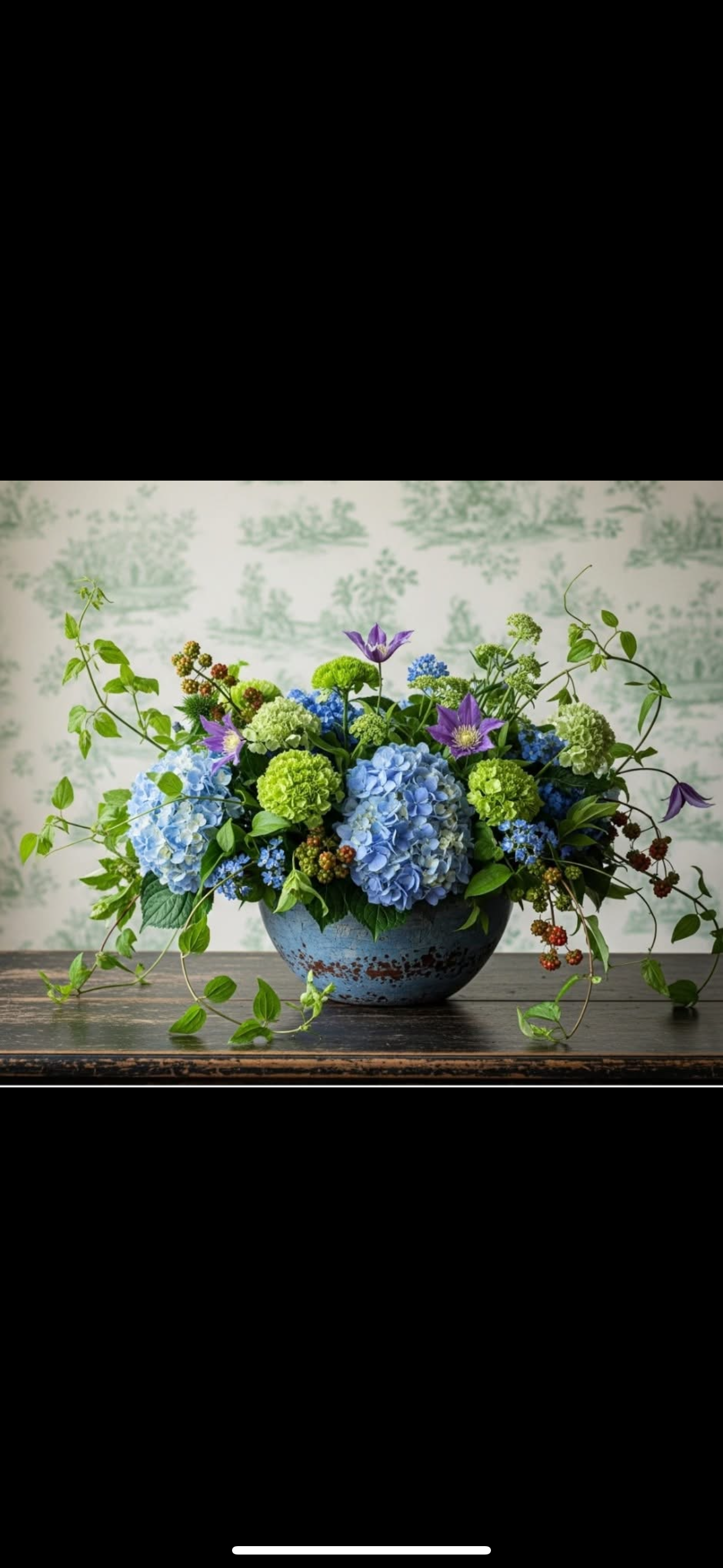 10 Hortencias azules y verdes con 10 tulipanes y un poco de rellenos verdes!