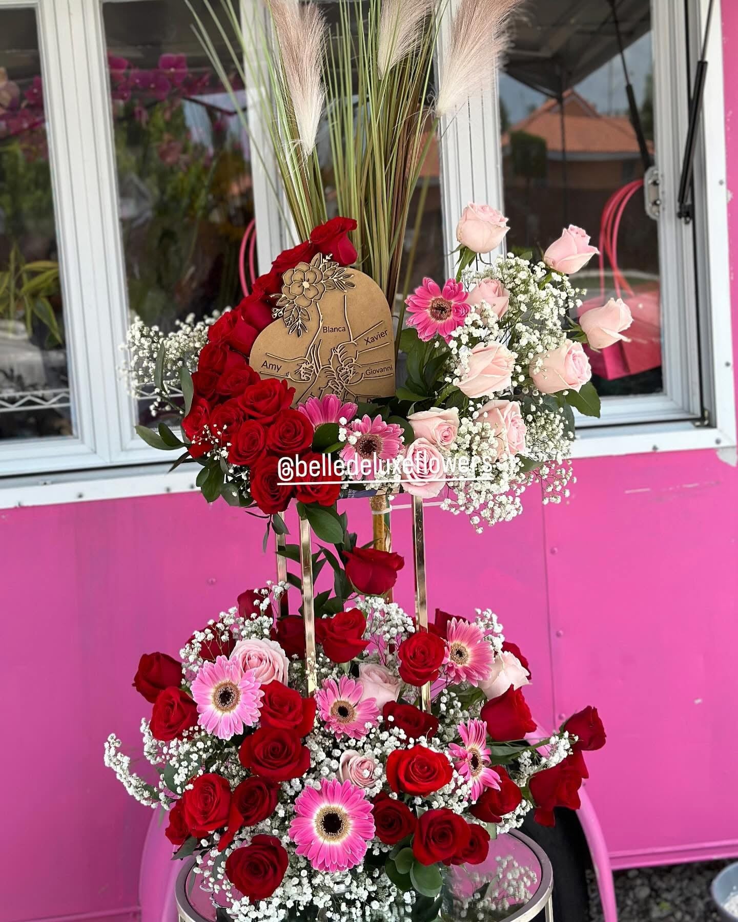 Tenga en cuenta que el corazón de madera es personalizado, por lo que necesitaremos dos días de anticipación para realizar este pedido. También podemos prescindir del corazón, solo las flores, si las necesita para el mismo día.